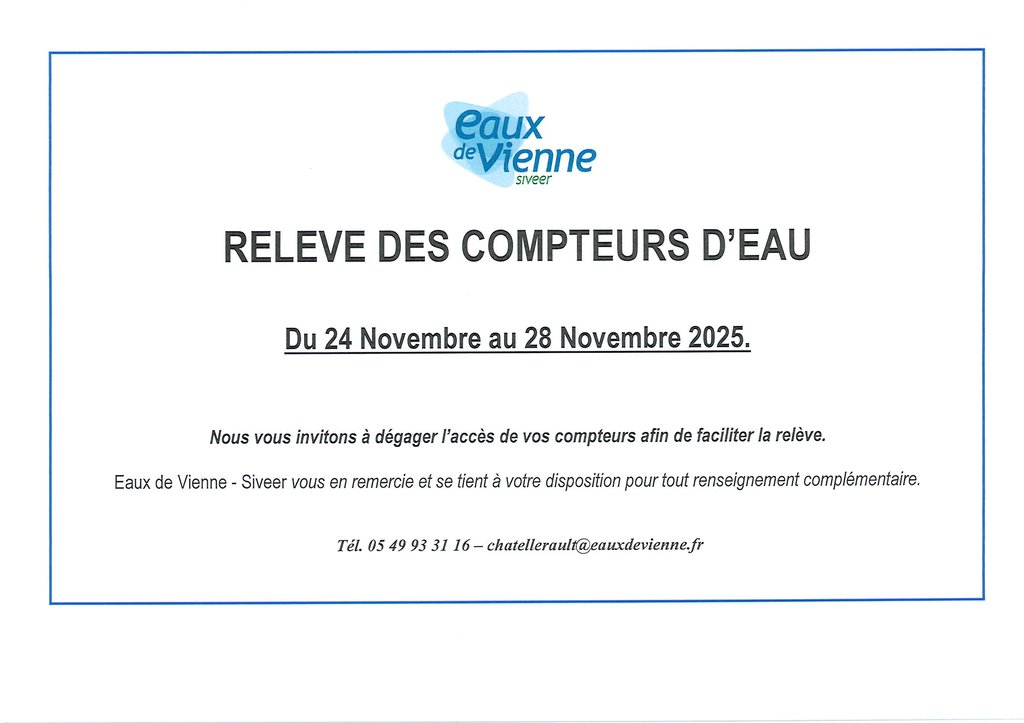 du 24 novembre au 28 novembre : eaux de vienne relève les compteurs d'eaux.