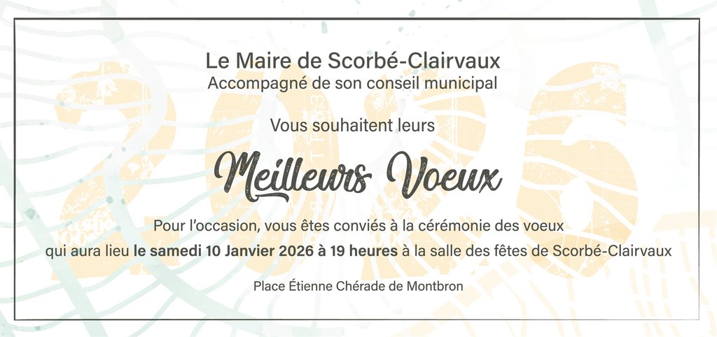 Vous êtes conviés à la cérémonie des vœux qui se déroulera samedi 10 janvier à 19 heures à la salle des fêtes.