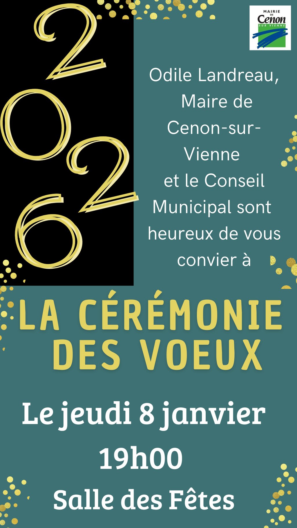 Odile Landreau, Maire de Cenon-sur-Vienne, et le Conseil Municipal ont le plaisir de vous convier Ă la traditionnelle cĂ©rĂ©monie des vĆux.